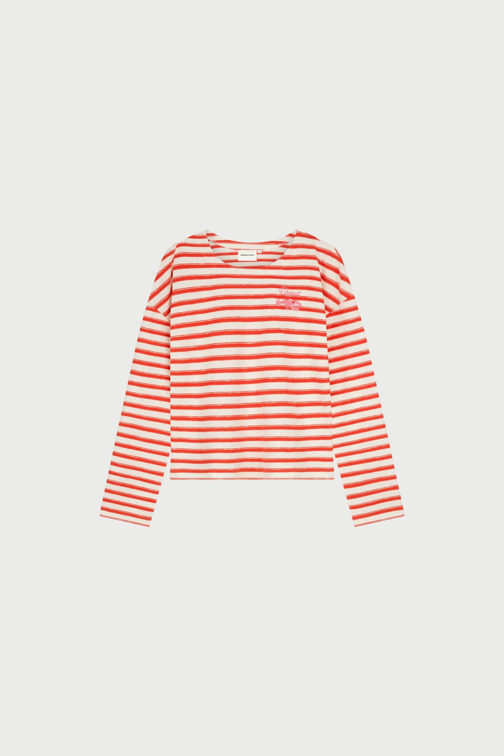 This sweater features horizontal orange stripes with a playful lobster detail at the front. Crafted from 100% organic cotton, it offers a soft, breathable feel and a relaxed, loose fit. Finished with a classic round neck, it’s perfect for casual days or adding a whimsical touch to your everyday wardrobe.