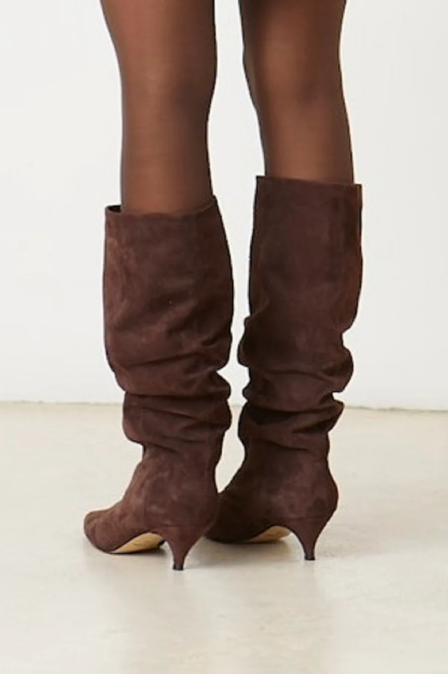 Trendy suede boots. Heel height 5 cm Good width on the shaft.