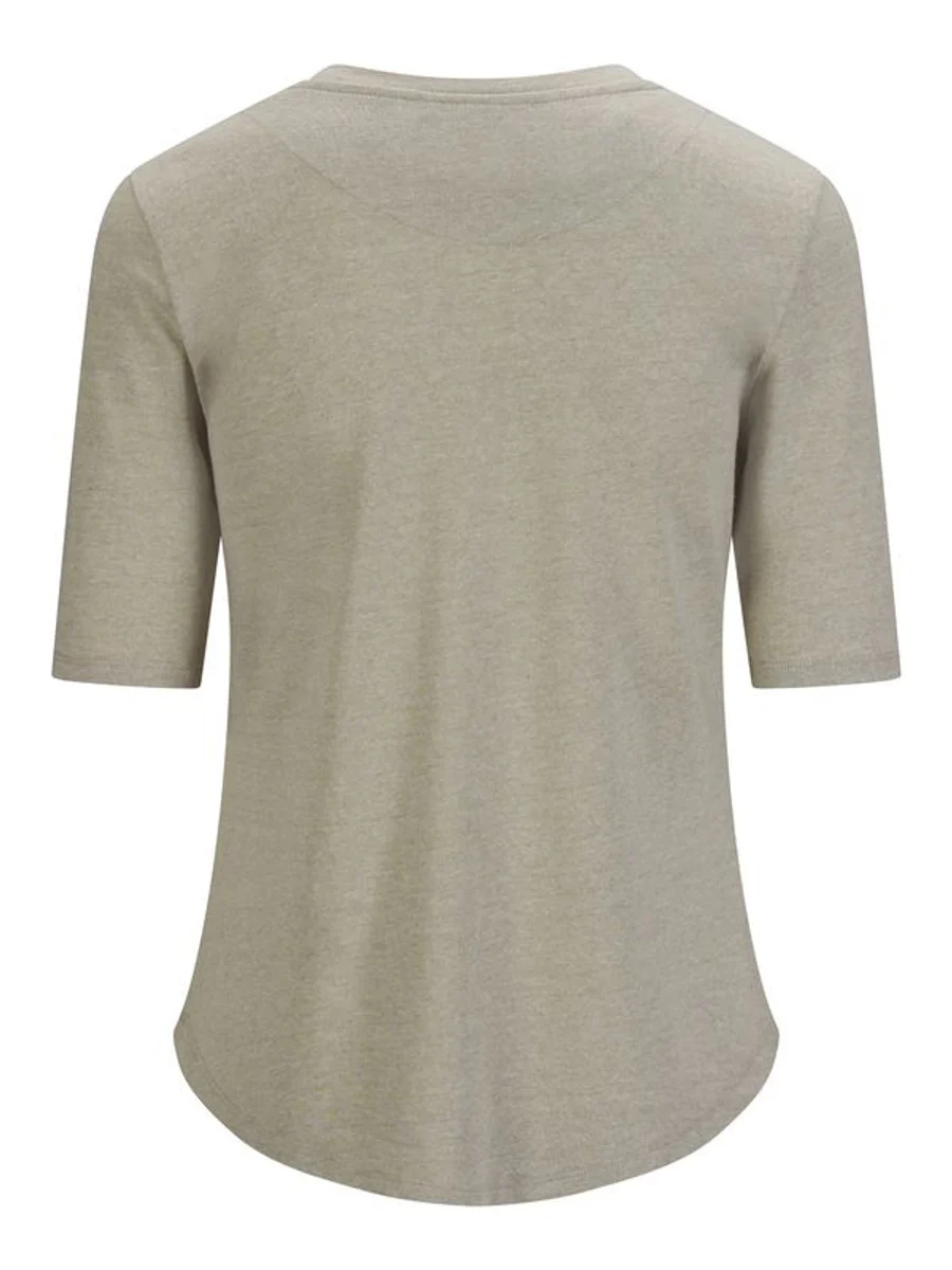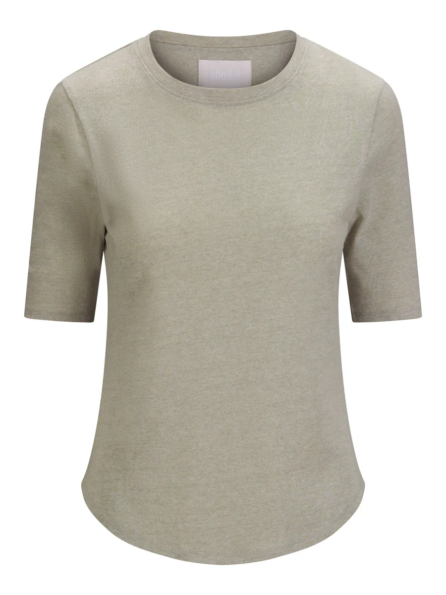 Karina linen tee is a basic garment that is a must-have in the wardrobe all year. The t-shirt has a round neck and three-quarters long arm. Denim Blue & Sand: 50% pre consumed cotton lyocell, 50% cotton