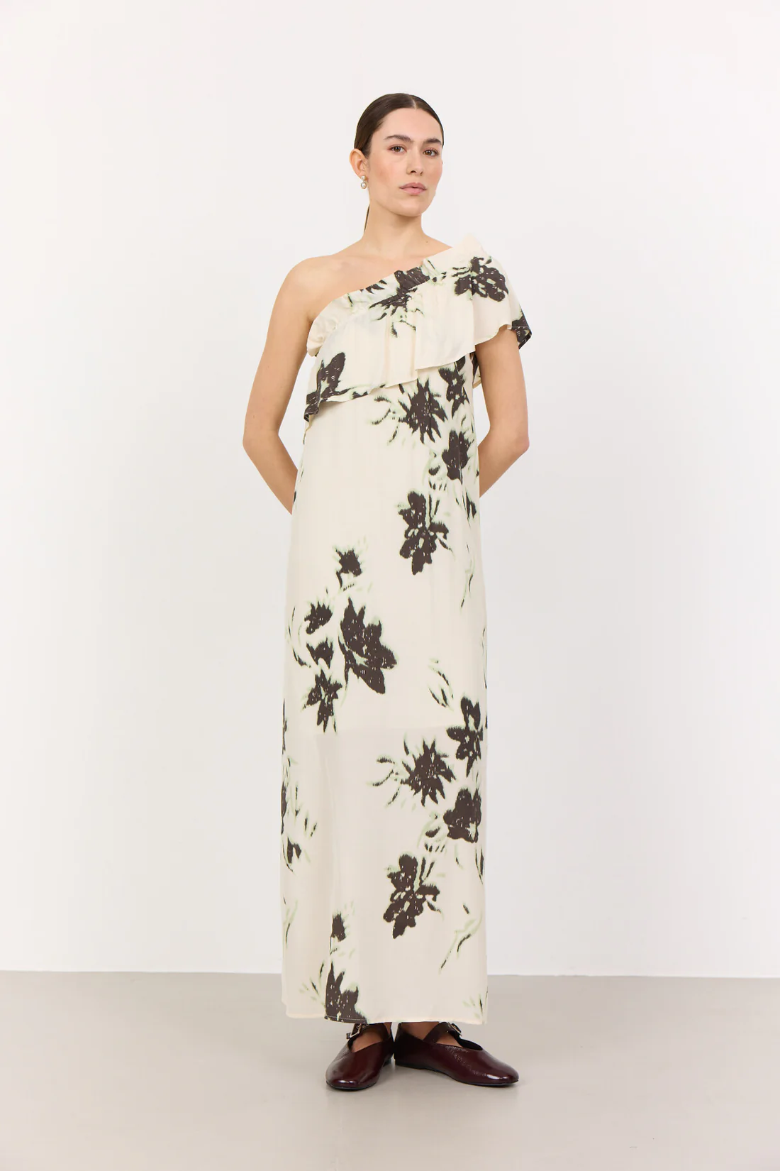 LR-LENORA 4 is an elegant dress made of a comfortable fabric blend with 55% Viscose, 45% LENZING™ ECOVERO™ Viscose. The dress features a one shoulder design, with ruffled details, a floral print, and a midi length. Style this lovely dress with some strappy heels and a simple cross-body bag for an elegant look.