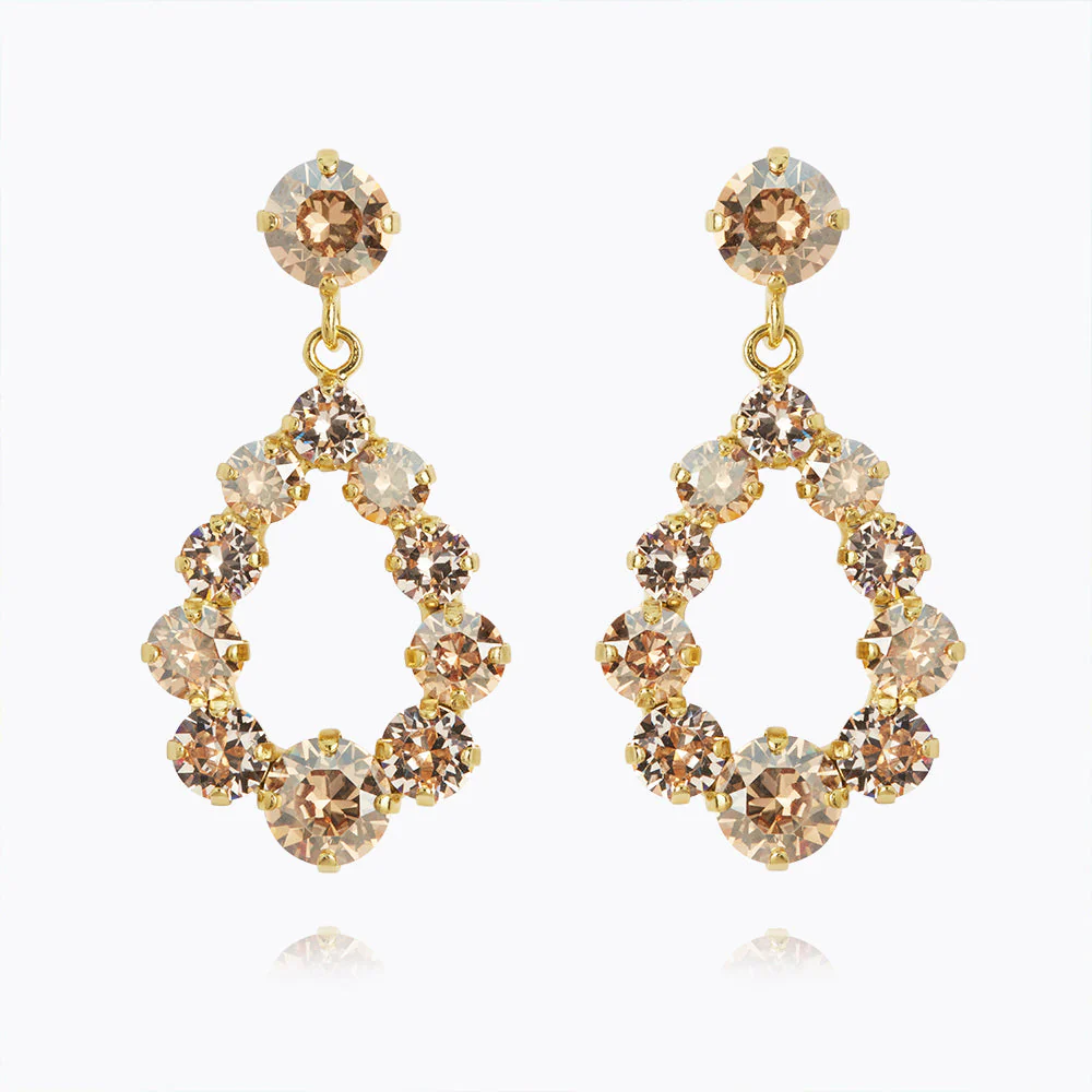A smaller version of our popular «Delia Earrings». This design is feminine and is a beautiful complement for the everyday look as well as for the party dress. The drop shaped earrings with round sparkling crystals in different shades gives every woman the everyday glam they need.