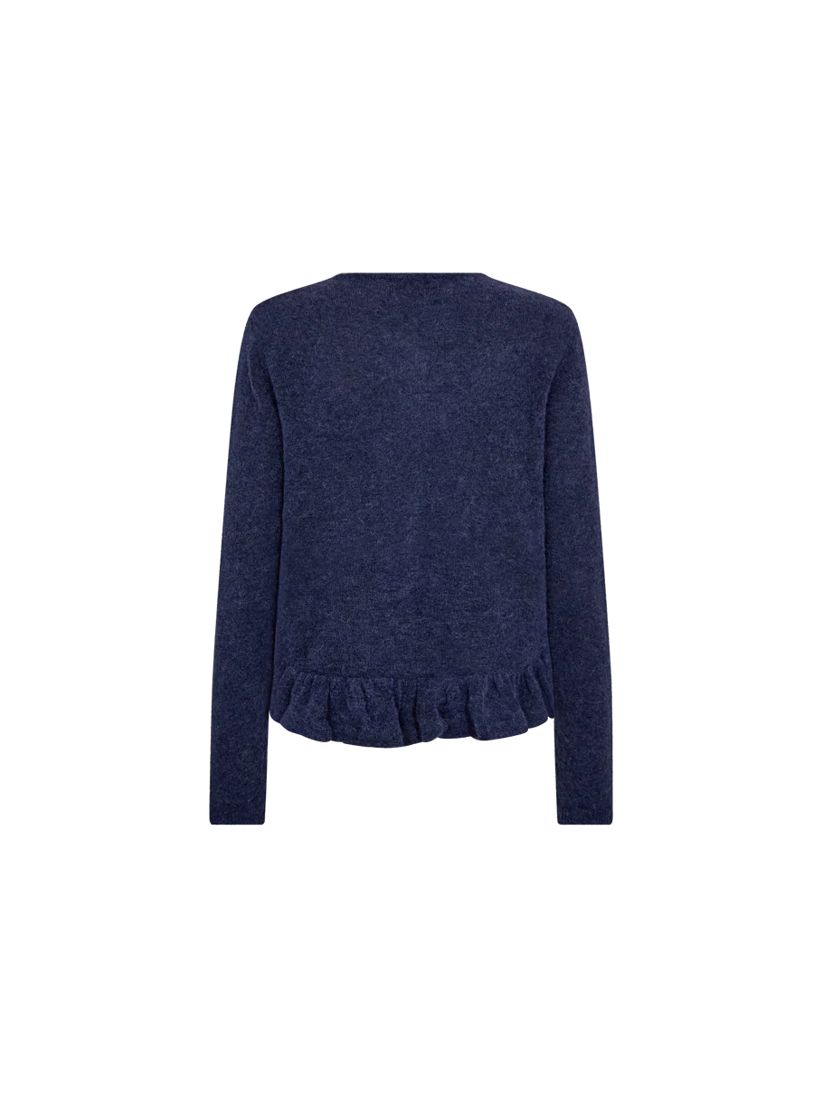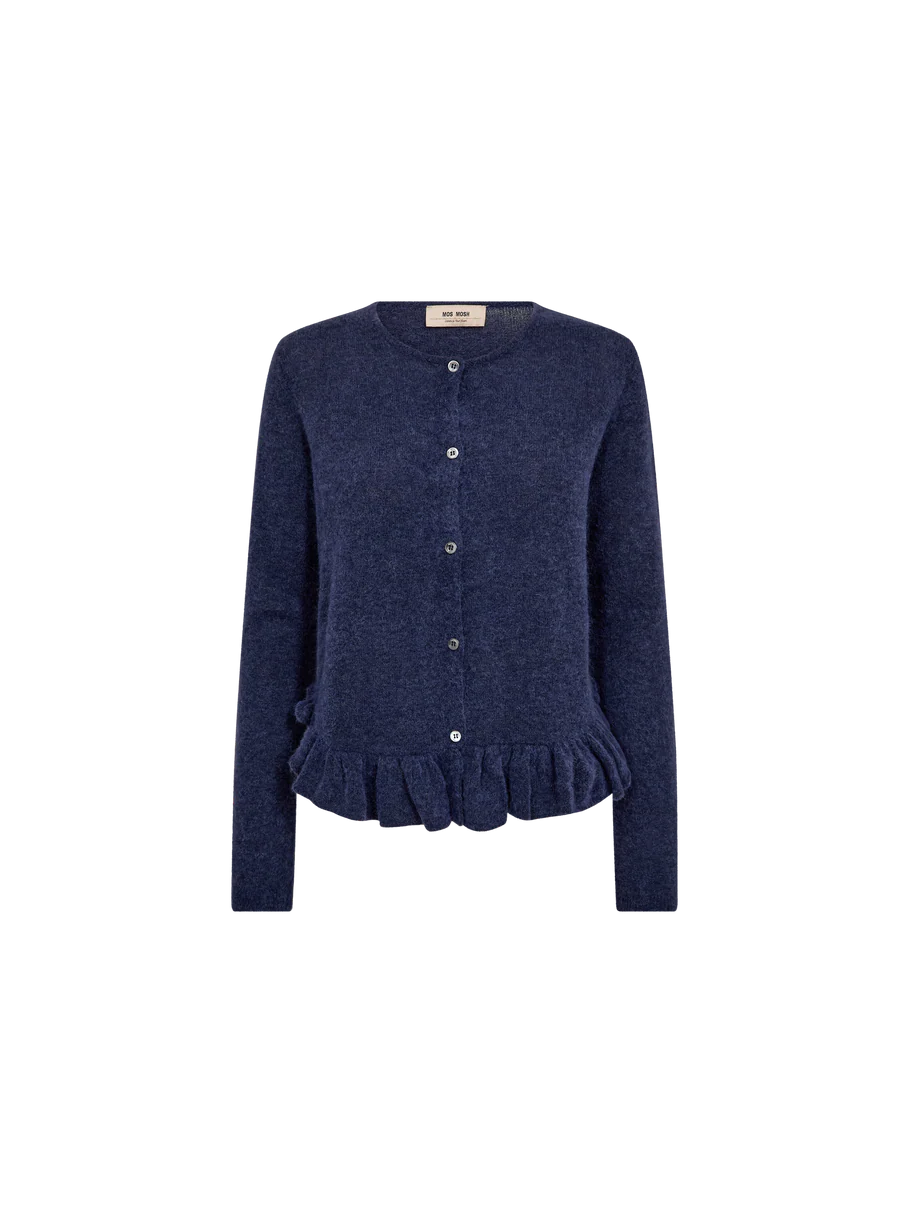 En myk cardigan i ullblanding med lange ermer, knappelukking og delikate volangdetaljer ved falden. Den flatterende passformen og feminine designet gjør den perfekt for å tilføre tekstur og eleganse til hverdagsantrekket.
