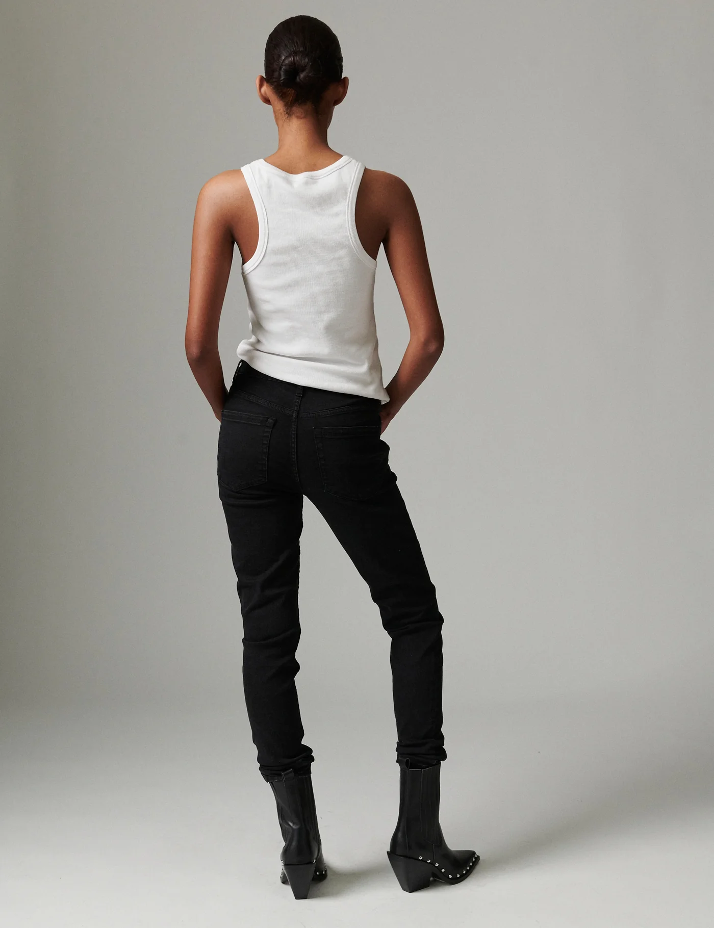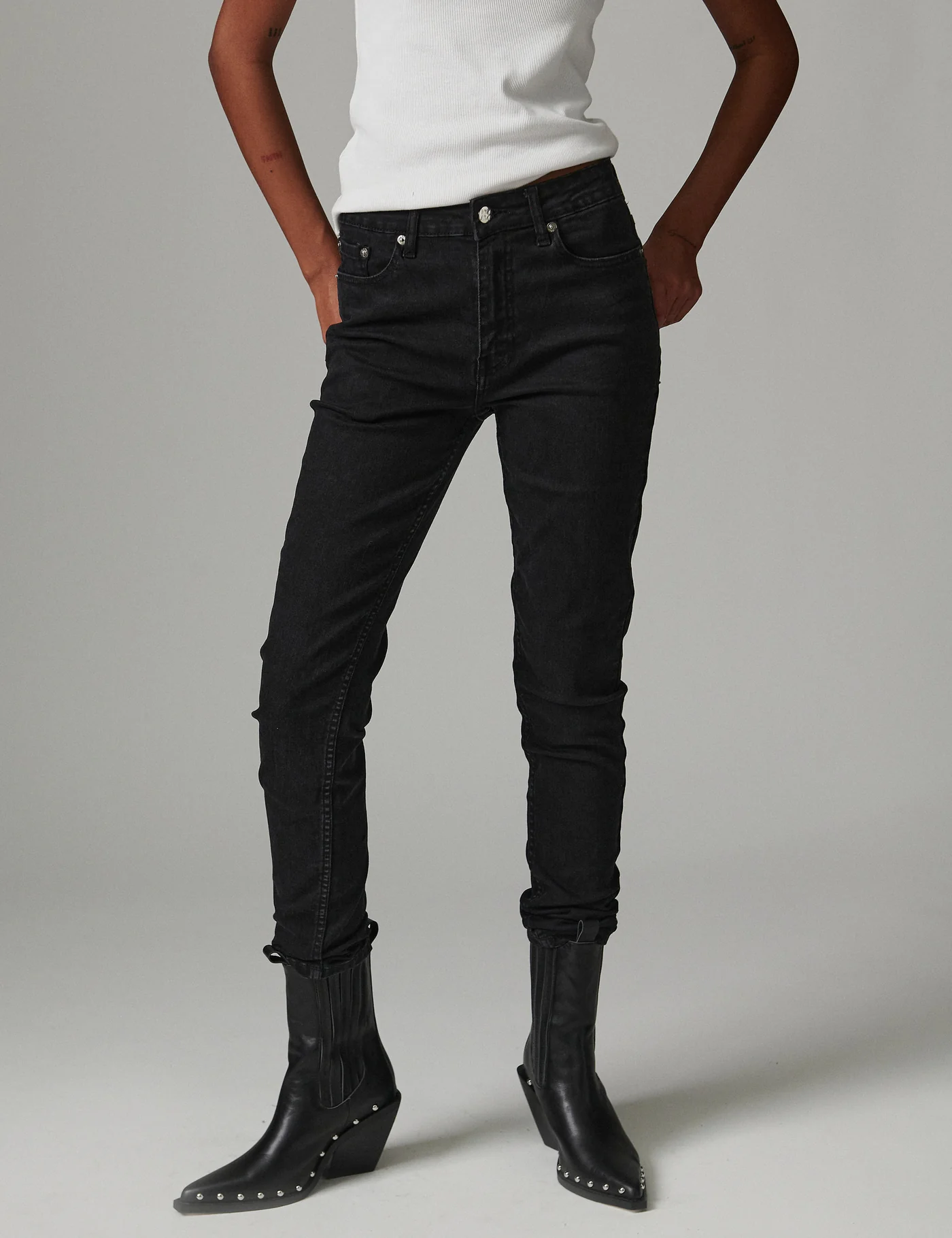 These stretchy, mid-rise, slim-fit jeans feature five pockets and a zippered fly with a button closure. These are a wardrobe essential, elevating any outfit. Add an oversized, crisp button-up shirt for a daytime look that’s still sophisticated.