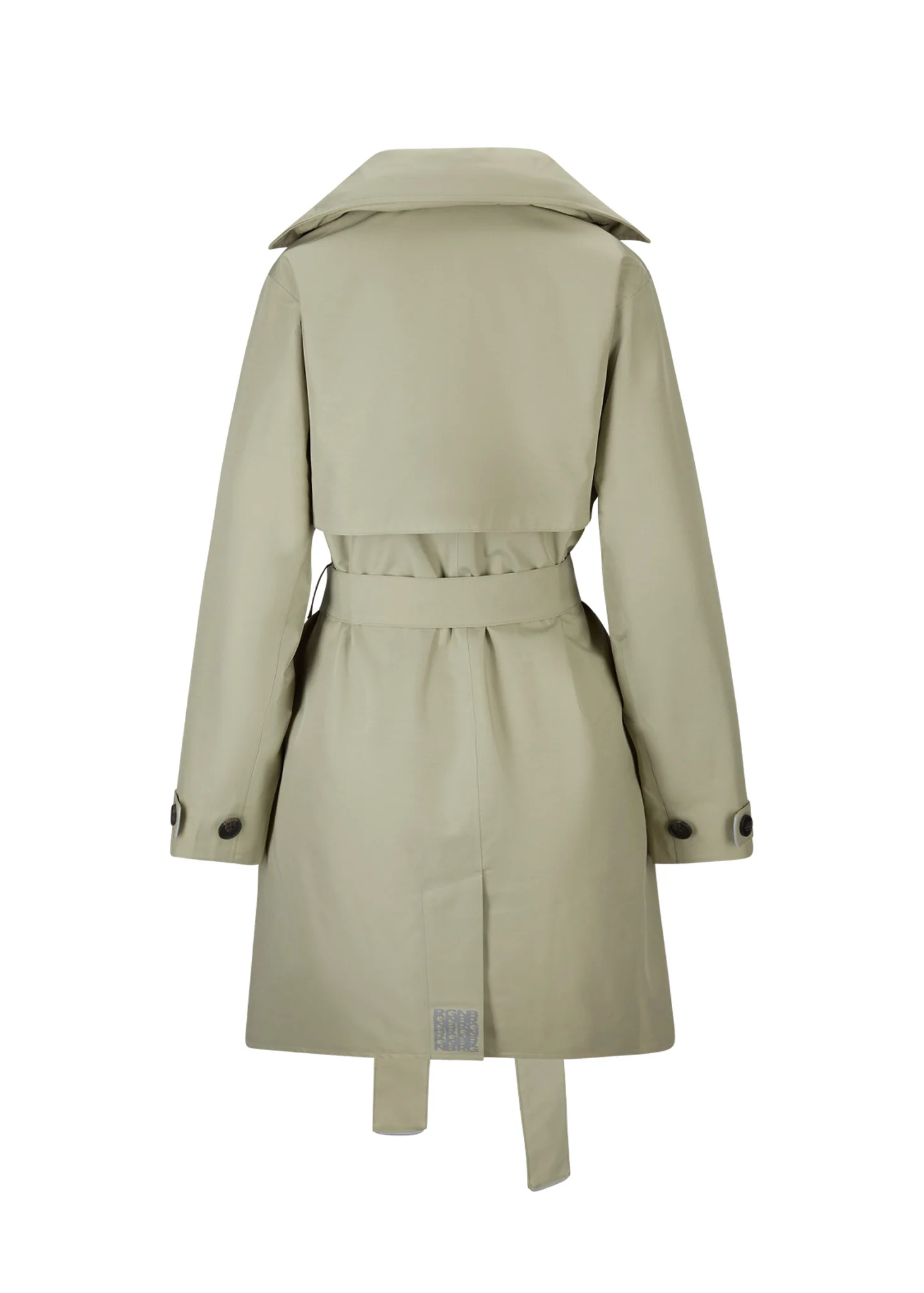 Yr’en Coat i Grønn, er en vanntett, tidløs og klassisk trench coat med magnetisk lukking. Regnjakken har vannsøyle på hele 20.000 og gode pusteegenskaper og er en videreutvikling av den klassiske Yr Coat. Modellen kommer med hette i kragen, mansjetter med knapper, refleksdetaljer og samme glatte stoff som i bestselgeren Regndråpe Trench.